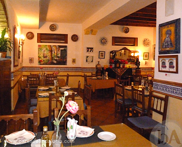 Cuando entramos a la taberna, más bien restaurante, veremos un amplio local, decorado con cierto tipismo andaluz y en el que se respira un ambiente tranquilo en el que poder disfrutar de unas buenas tapas o una comida más contundente.